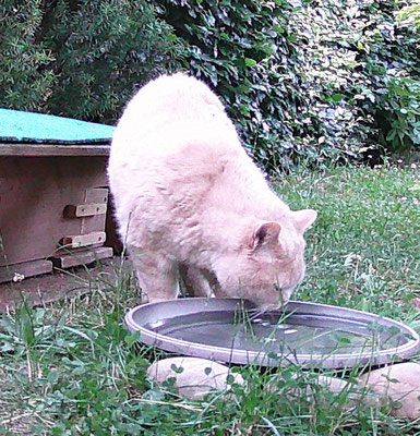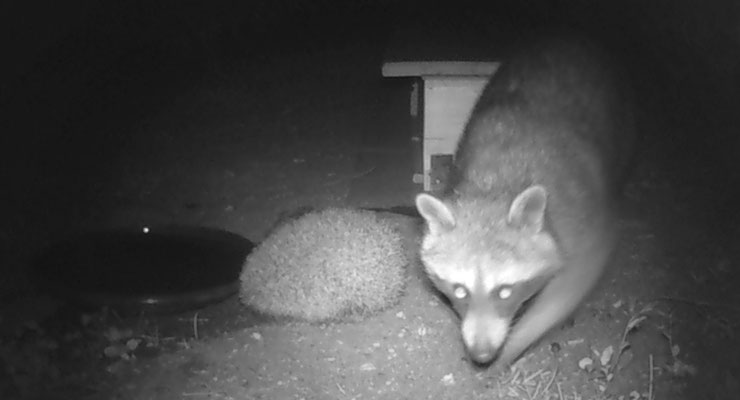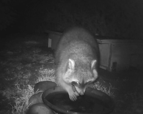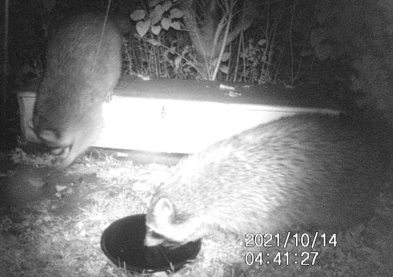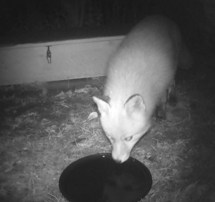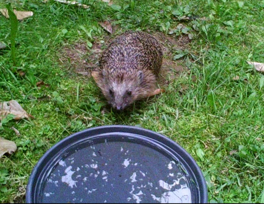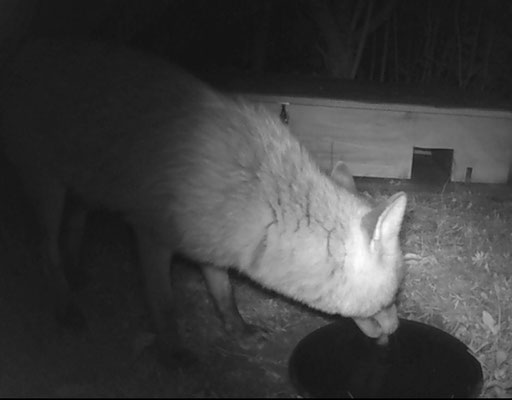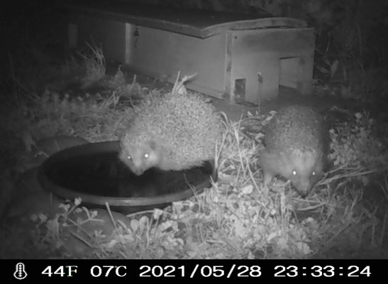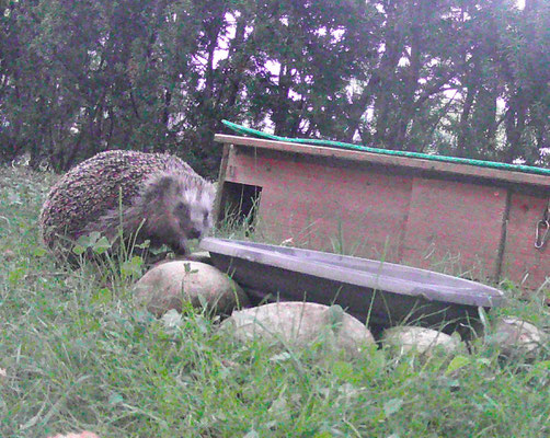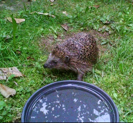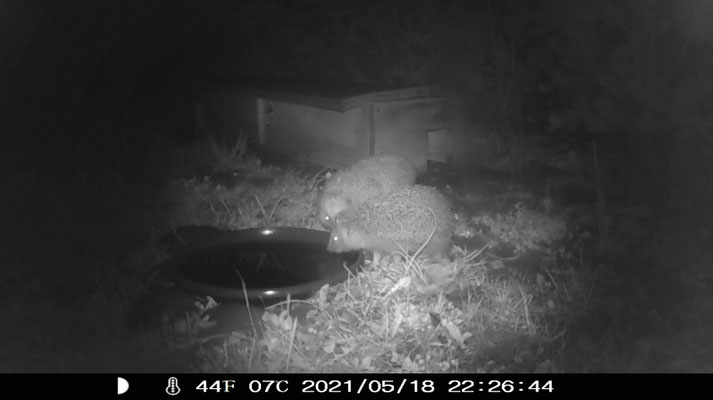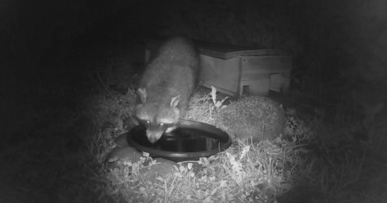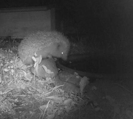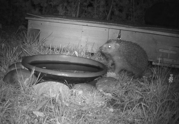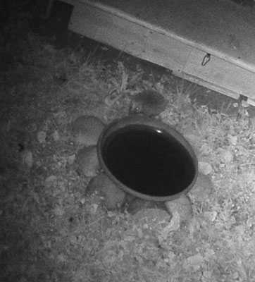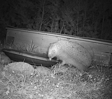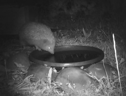 (Wir haben eigentlich Wildcameras aufgestellt, um die auf unserem Grundstück lebenden Igel zu „überwachen“. Sowohl der allgemeine Gesundheitszustand als auch das Gewicht vor dem Winterschlaf sind uns wichtig. Dass die Trinkstellen der Igel in so großem Umfang auch von anderen Tieren besucht werden, zeigt, wie nötig die Hilfe von uns Menschen ist. Die Bildqualität ist leider nicht immer die beste, trotzdem sieht man, welche durstgeplagten Tiere dankbar jede Trinkmöglichkeit annehmen.)