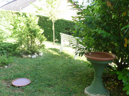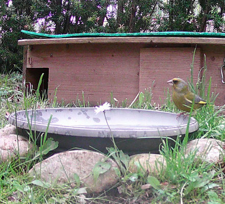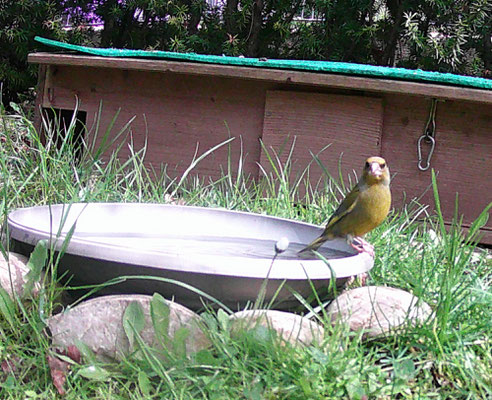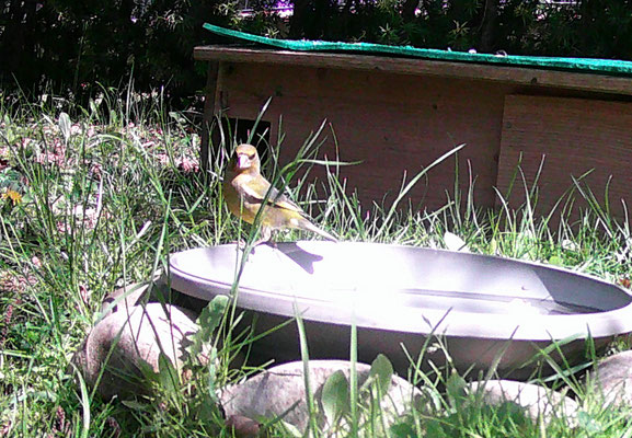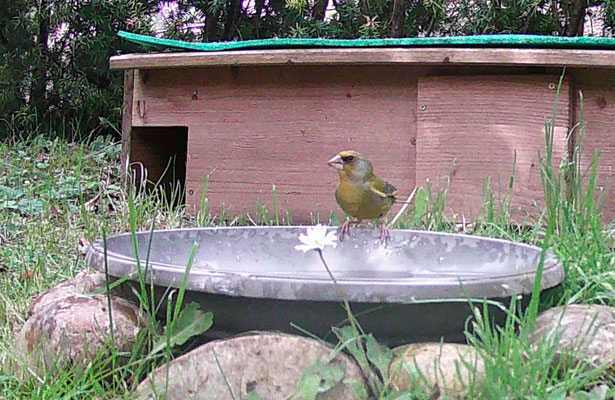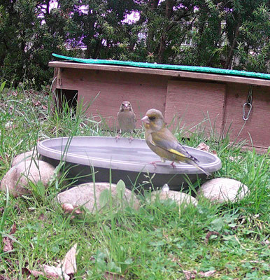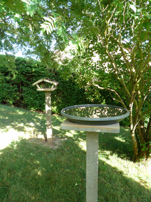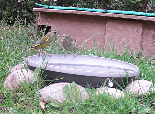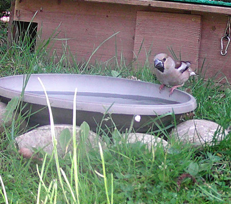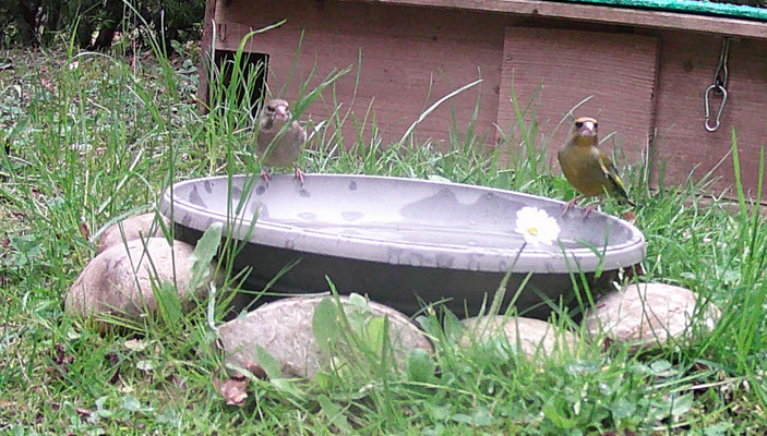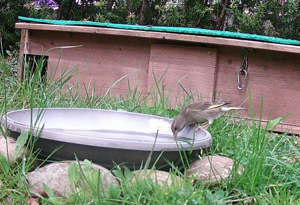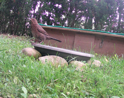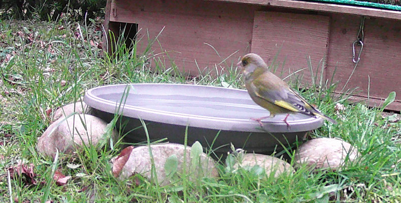 Neben erhöht stehenden Vogeltränken werden auch ebenerdig stehende Näpfe angenommen. Wer über ausreichend Platz verfügt, kann natürlich beides anbieten, in unterschiedlichen Größen.